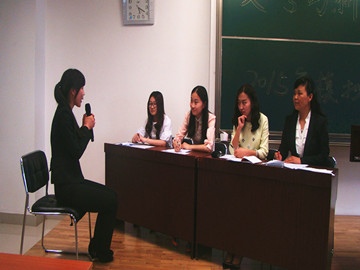 学院团总支书记兼学工办主任张莉、现就职于内蒙古日报社的我院优秀毕业生刘燕、现任招商银行呼和浩特分行同业客户部客户经理的我院优秀毕业生王静宜、就职于中国移动通信呼和浩特分公司的我院优秀毕业生刘婷婷到场担任比赛评委,并为同学们指点就业迷津。