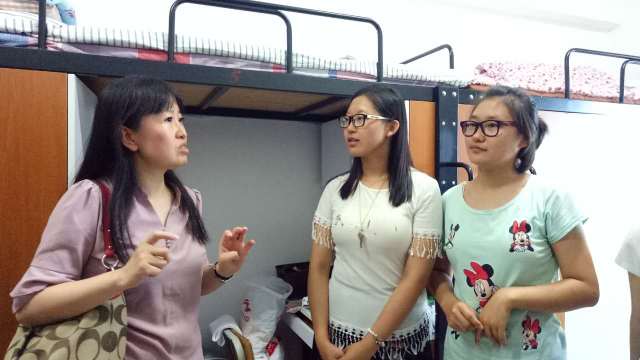 8月16日下午,我院党总支副书记吴栓虎来到了新生宿舍,与同学们亲切交谈,询问学习与宿舍生活情况。副院长张丽萍,2017级各班班主任和辅导员陪同走访。