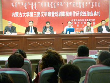 上世纪60年代初,内蒙古大学曾成功举办过两期文学创作研究班,培养出一大批享誉全国文坛的著名作家。2009年文研班恢复举办,2009级、2011级文研班效果显著,为我区培养了一大批文艺事业人才。2012级文研班的成功举办更是填补我我区戏剧影视创作方面的空白,为大力发扬草原文化,创作人民群众喜闻乐见的影视作品,奠定了坚实的基础和开拓了发展道路。