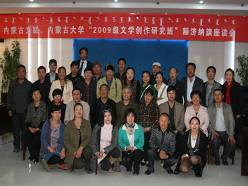 内蒙古文联、永利y23455文研班额济纳旗座谈会合影 |