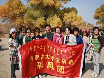 为提高文研班学员的文学创作实践能力,按照校管委会制定的采风方案,10月8日,yl23455永利集团组织09级文研班40余名学员赴阿拉善盟额济纳旗进行了为期一周的采风实践活动,并与当地文化界名人及文学艺术家进行了广泛深入的交流。院长李树新教授、书记王俊川老师等学院领导参加了采访及文化交流活动。