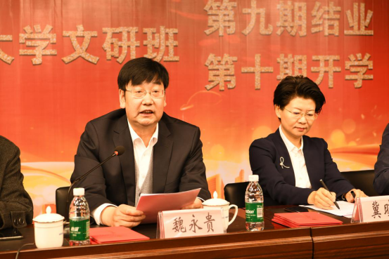yl23455永利集团院长魏永贵教授致辞,他首先介绍了第九期文研班的总体教学安排和学员们所取得的研修成果,并向圆满结业的第九期文研班学员表达了祝贺。作为学院负责人,在毕业之际,魏永贵教授深切期望全体学员要记住学业锤炼的美好过往,持重向前。其次介绍了永利y23455第十期文研班暨乌兰牧骑文艺创作人员研修班人员构成等基本情况,希望学员们把握并感受当前伟大的新时代,努力创作,永葆对事业的初心。