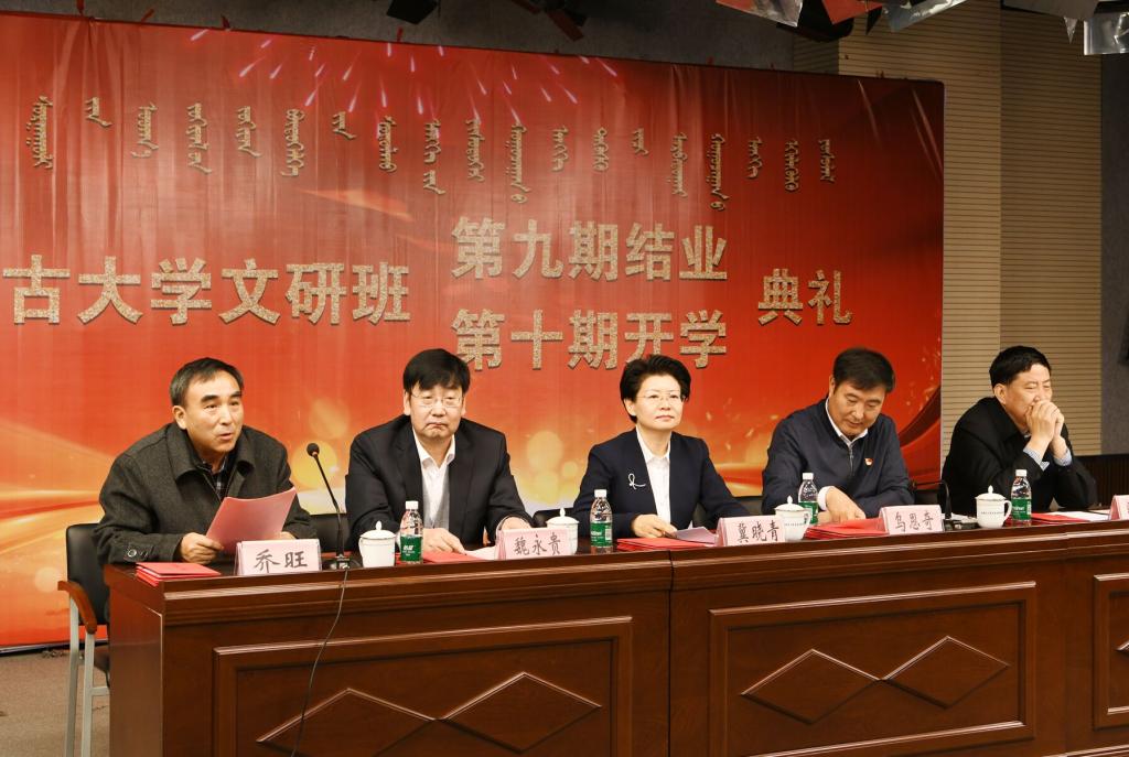 最后,自治区委宣传部副部长乌恩奇、内蒙古自治区文联党组书记冀晓青、永利y23455副校长额尔很巴雅尔分别致辞,对第九期文研班全体同学顺利毕业并取得了优异成绩表示祝贺,同时对第十期乌兰牧骑文艺创作人员研修班学员表示欢迎。