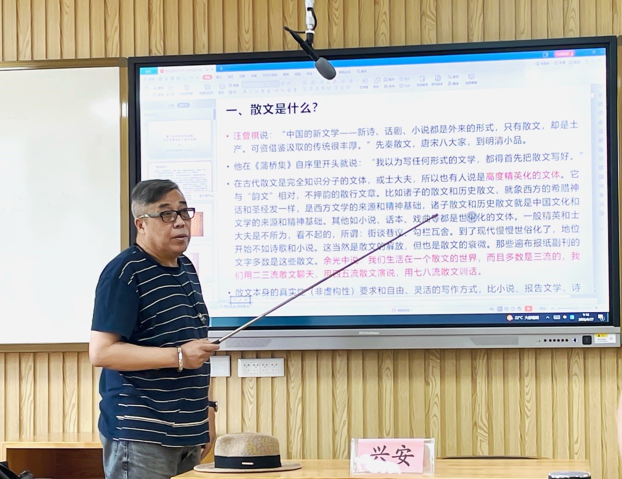 6月27日上午,著名艺术家、文艺评论家兴安为文研班带来了一场精彩授课,讲述散文写作的若干问题和文学精品的打造。课程分为两个部分,首先是散文的基本概念和语言表达,其次是如何打造文学精品以及国内外文学奖的影响与评选流程。