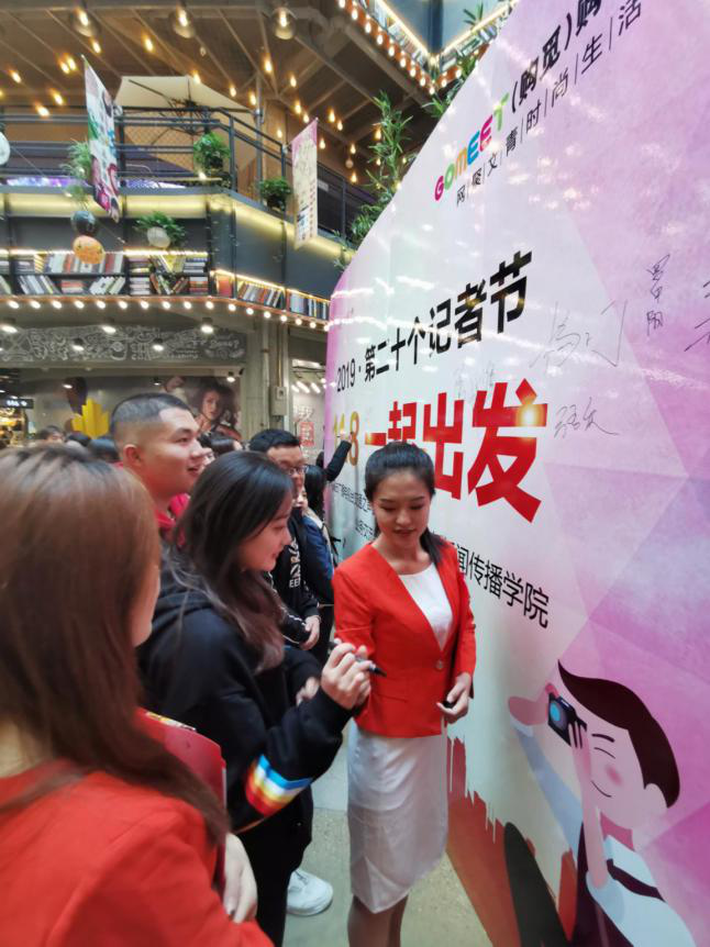 交通之声的主播们纷纷登台分享新闻经验,同学模拟采访,播音与主持艺术专业的6位同学朗诵诗《我的名字叫记者》《我们在中国大地上报道》,欢乐而富有趣味的活动,激发了现场学生的参与热情,也更加深刻地体会到了新闻人的责任与使命。