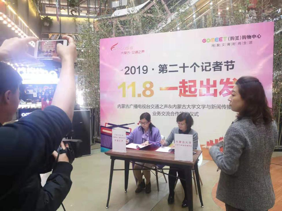 11月8日,第20个中国记者节。我院播音与主持艺术专业、新闻学专业的50余名师生与内蒙古广播电视台交通之声的主播们齐聚购觅商城怀旧电台博物馆,签约合作协议,分享记者的经验与心得,在热烈欢乐的气氛中度过了今年的记者节。