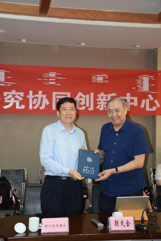 我校副校长额尔很巴雅尔教授对研修班的顺利开展和口头传统研究协同创新中心的成立表示祝贺,为口头传统研究协同创新中心首席专家朝戈金研究员颁发聘书,并结合习近平总书记视察永利y23455蒙古文古籍文献展阅室的情况和深入贯彻落实习近平总书记重要讲话精神,做好民族文化搜集、整理、保护、挖掘方面的个人体会对创新中心提出了丰富中华优秀传统文化遗产的要求。