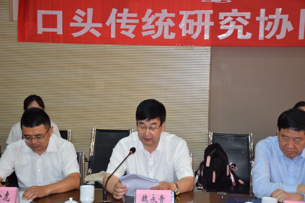 会上,院长魏永贵教授介绍了成立口头传统研究协同创新中心的定位,以及学院发展历程、师资力量和学科发展积淀,并宣布口头传统研究协同创新中心正式成立。