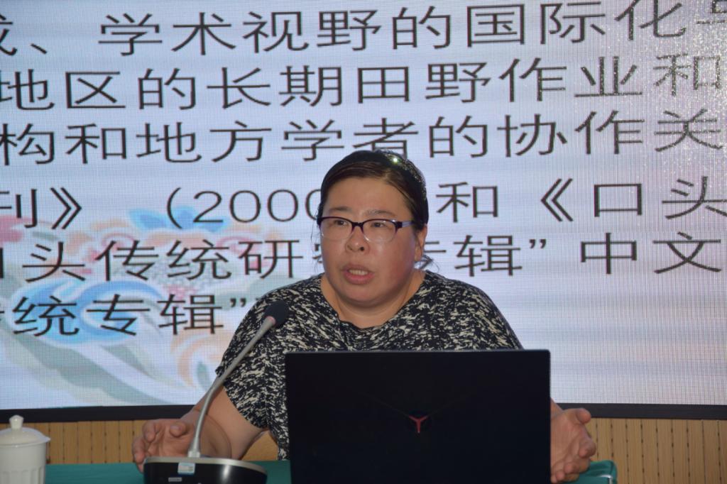 8月12日上午,高荷红研究员以“口头传统研究+”专题讲座为学员们上了别开生面的第一堂课,她就口头传统研究的价值、我国口头传统研究的学术历程、国外口头传统研究现状做了讲解,提出建立中国学派正当时,同时就未来的研究方向,指出完整的口头诗学的四个维度:古代到今天、东方到西方、口头的和书面的、文学的和艺术的。
