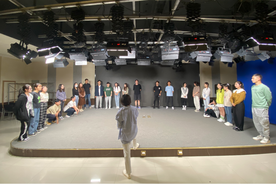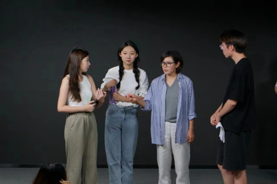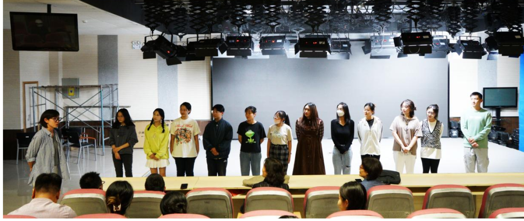 排练之始,哈布日导演带领演员们进入“破冰”环节,目的是加强演员之间的认识和了解。排练环节中,哈布日导演希望同学们以专业演员的标准进行排练,对演员们台词表达的精确性、舞台表现的张力等方面提出了严格要求,力求为全校师生、校友呈现一部完美的话剧作品。