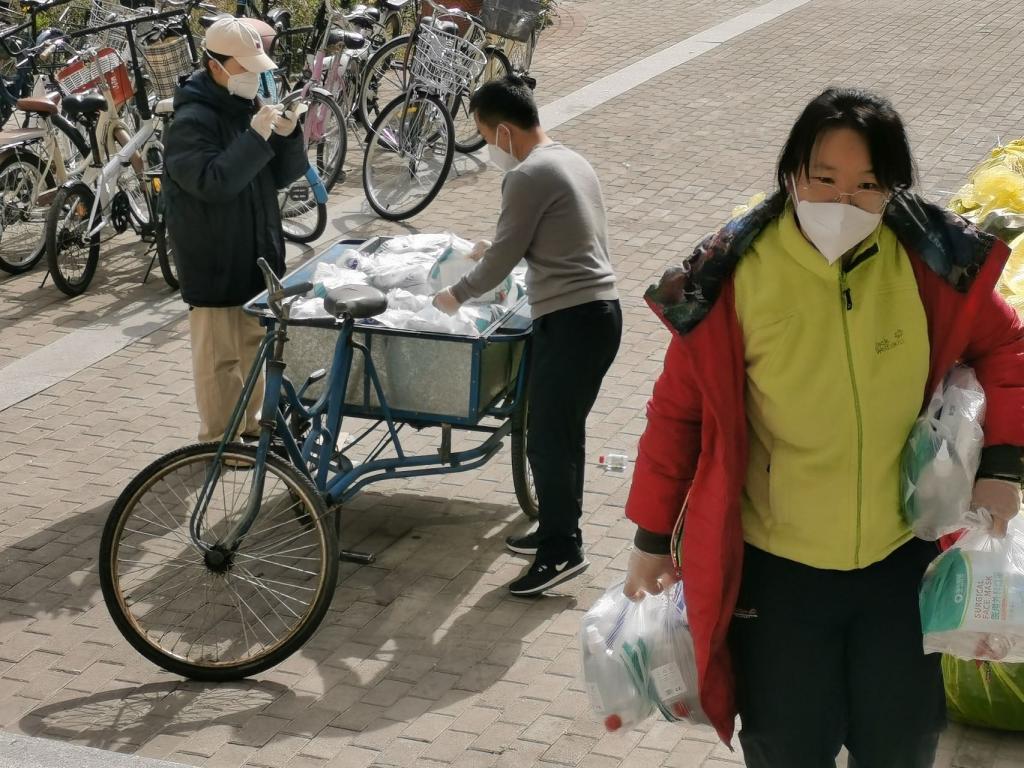 为了让学院学生第一时间能够拿到防护用品,书记、院长、驻校教师齐上阵,连夜包好了262个宿舍的酒精、消毒凝胶、N95口罩组成的防疫大礼包。给宿舍楼运送分发防疫物资的人手不够,马骐老师直接脚蹬人力三轮车“疾驰”向校园深处的学生公寓楼赶去,她对内大有深深的情怀,她说“我是内大汉语系毕业的,在我心里内大就是家,只要内大有需要,我随时回应召唤冲上来,更何况我是一名老党员。蹬三轮车送防疫物资时候心里只有一个念头,就是我的家生病了,消杀物资必须尽快送给家里的孩子们,越早越好,越快越好。”为了能把热乎的饭菜用最快的速度发放到同学们的手中,驻楼教师张博图、海日、李想每天组织志愿者们,拎着三十盒一袋的饭菜,一天两次送到每一个宿舍门口。
