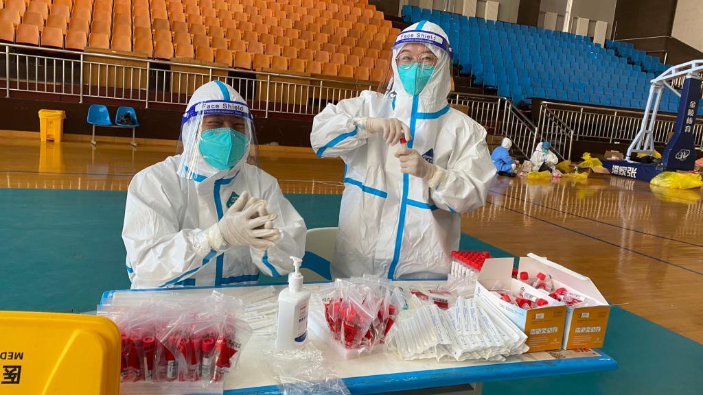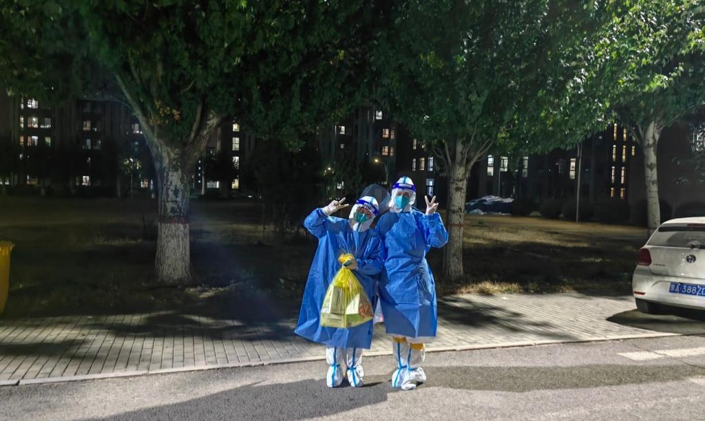 刚刚入职的青年教师白存良承担了核酸检测、物资搬运等大量工作,这样一干就是将近40天。“进来的时候我不知道怎么干活,后来就对核酸检测的流程和细节越来越熟练”,在她看来,经历了抗疫前线的洗礼,自己正从刚入职的教学小白向抗疫先头兵,向合格的大学教师蜕变着。