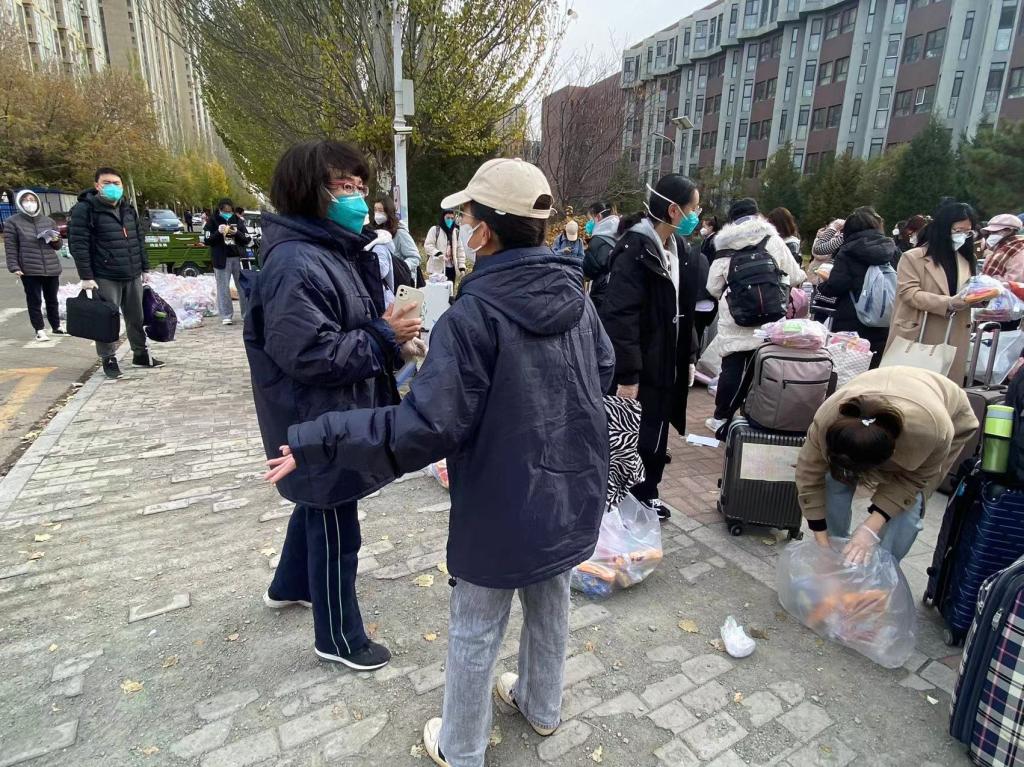 11月2日凌晨2点,书记和院长还在学院疫情工作群里发布学校指挥部刚刚下发的工作要求和学生转运消息,布置具体转运工作安排,早上4点,书记、院长和驻校教师们的身影就又出现在了学生返乡大巴旁边。
