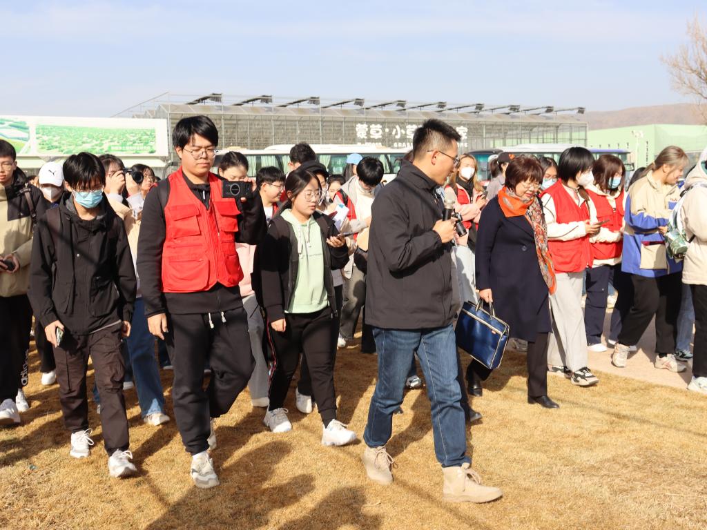 3月21日上午, 2022级播音与主持艺术专业的同学们在马骐老师带领下,来到了赛罕区金河镇,实地感受金河镇科技农业的发展现状。赛罕区农牧水利局张喜印站长为同学们介绍了金河镇的农业产业化经营理念和引进的先进种植技术。