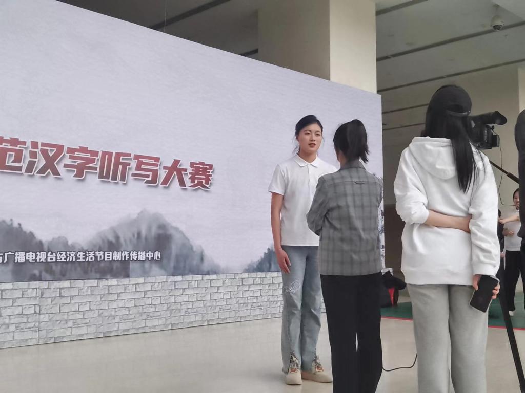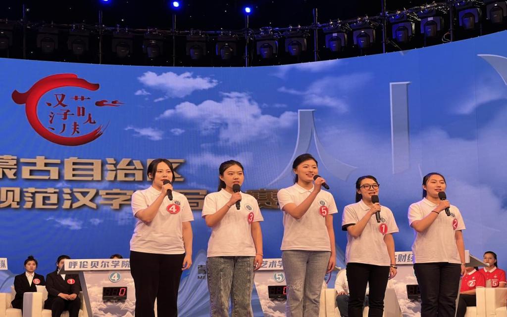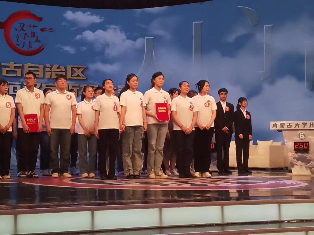 在学院精心组织、指导教师全力指导之下,选手们充分备战,信心满满。笔走乾坤恢弘气,墨染中华四时春。初赛笔试环节,同学们意气风发,胸有成竹,顺利进入复赛。百舸争流千帆竞,奋发有为正少年。复赛环节,经过激烈比拼,同学们团结合作、力争上游,以265分的高分遥遥领先,晋级六强。横竖撇捺有乾坤,一点一画有文章。在决赛场上,同学们处变不惊,落落大方,以良好的心态和扎实的功底,最终以260分的高分勇夺冠军!这是我校近年来参加自治区汉听大赛的最佳成绩。赛后,我院指导教师张鑫和参赛选手王雨琪接受了内蒙古电视台记者采访。