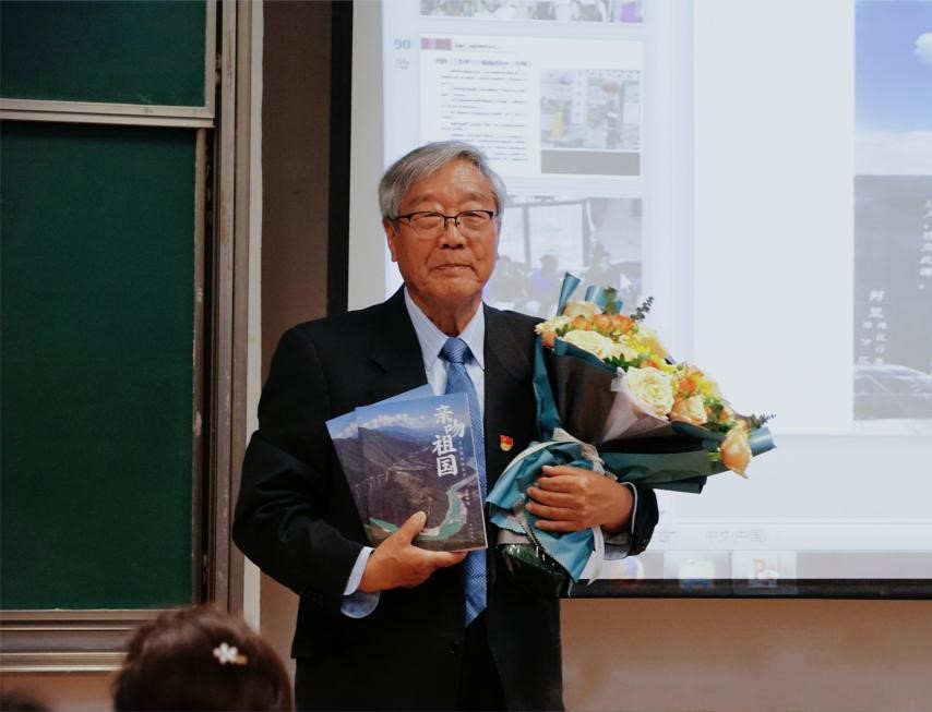 主讲人王喜民教授作为著名记者、作家,以自己追随习近平总书记足迹的工作经历为基础,分享了自己沿祖国边境线踏访时的心得。他主要围绕“祖国,神圣的国境线”“爱国主义教育基地”“沿着习近平总书记的足迹踏访”“祖国在我心中”四个部分展开,向大家展现了祖国大地上雄浑的风物景色、意义深刻的爱国教育基地以及在采写途中了解到的动人故事。他还特别引用习近平总书记对青年“用脚步丈量祖国大地,用眼睛发现中国精神,用耳朵倾听人民呼声,用内心感应时代脉搏”的期望,结合自己踏访祖国边境线的经历,鼓励新闻工作者响应习近平总书记号召,增强脚力、眼力、脑力、笔力。之后,王喜民教授将自己的著作《亲吻祖国》分别赠予yl23455永利集团及内蒙古广播电视台广播新闻中心。