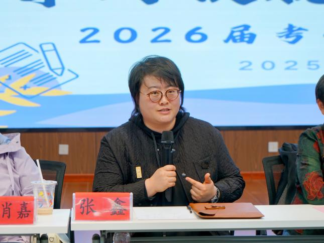 座谈会上,辅导员张淼老师以近三年学院升学数据为切入点,用直观的图表分析了学生们的录取情况,为同学们提供了针对性的院校报考参考。老师们结合自身专业领域,从多个维度展开指导。通过详细解读各专业发展前景与学科特色,帮助同学们精准锚定适合自己的专业方向,同时引导同学们进行科学合理的自身评估,客观审视自身优势与潜力,从而高效匹配报考目标院校。鄢冬副院长深度剖析了近年来顶尖高校中国语言文学、新闻学以及文艺学招生现状以及生源状况,并为同学们考研规划提供了有效建议。师生交流环节,现场气氛热烈。同学们踊跃提问,涵盖考研规划、误区规避、心理调节等多个方面,老师们耐心细致地进行了解答,为同学们提供了切实有效的帮助。