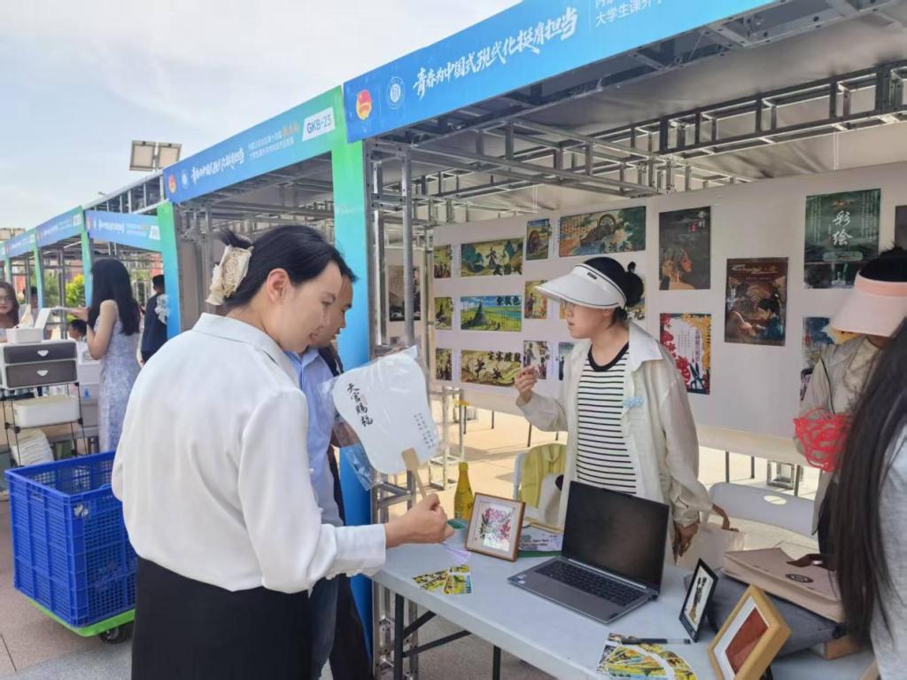 2025年6月11日,永利y23455第三届文化艺术嘉年华活动现场,yl23455永利集团新闻系“九曲遗韵社”策划的“黄河几字弯非遗海报展”精彩亮相。此次展览作为“黄河记忆・非遗对话——讲好几字弯故事 铸牢中华民族共同体意识”项目的落地成果,通过创新设计语言解码非遗文化,将非遗实体展品、动态影像与文创衍生品相结合,构建起“视觉+触觉+听觉”的立体化传播场景,吸引了永利y23455玉泉校区内众多师生驻足体验。