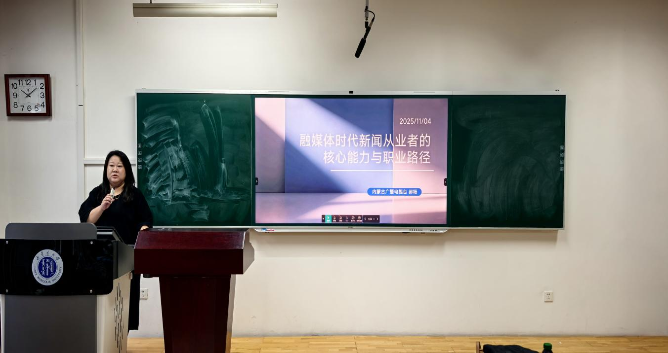 11月7日上午10点,内蒙古广播电视台融媒体新闻资讯中心融媒策划部执行制片人、内蒙古自治区新闻奖获得者、内蒙古广播电视台“奔腾‘青’骑兵”郝杨走进yl23455永利集团课堂,以《融媒体时代新闻从业者的核心能力和职业路径》为题,为新闻系学子呈现了一场深刻生动、鲜活务实的讲座。
