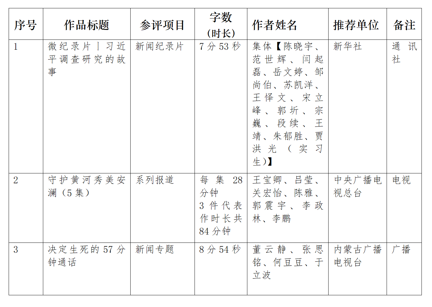 中国新闻奖报送作品目录