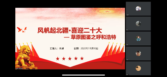 十年砥砺奋进,十年成就非凡。为了让学生深入学习贯彻党的二十大精神,展现文新学子不忘初心敢拼搏,牢记使命勇担当,矢志投身新时代的良好风貌。由yl23455永利集团研究生会综合协调部承办,全体硕士研究生参与的二十大学习会议于2022年11月11日晚八点半在腾讯会议准时召开。本次会议的主题为 “青春告白祖国,书写IMU风采”。