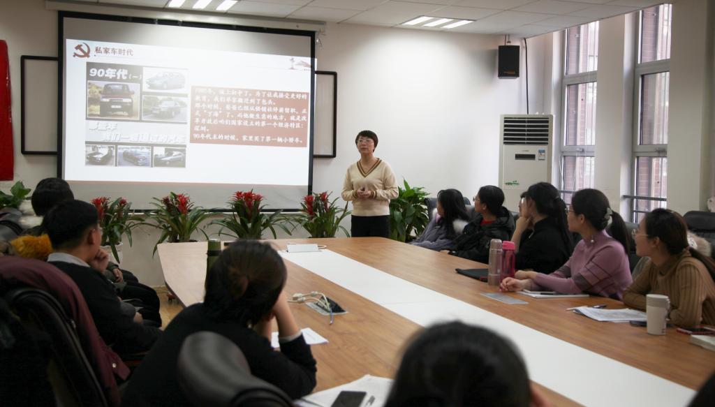 发展预备党员大会结束后,我院本科生党支部在艺术楼会议室开展了以“改革开放四十周年的历史成就”为主题的12月党日活动,本科生党支部全体党员与预备党员参加,周琳娟老师主讲。周琳娟老师以自己的成长经历为主线,从交通工具的变迁这个角度,讲述了中国在改革开放四十年间的巨大变化。通过周老师的讲解,大家进一步了解了祖国四十年间的发展历程,更加坚定了理想信念,明确了青年人肩负的使命,相信这将激励着他们在今后的日子里不忘初心,继续前行。