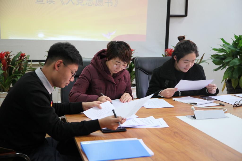 12月7日上午,本科生党支部召开本学期第三次全体党员大会。会议以讨论孔心玉等10名发展对象转为预备党员为主要议题,严格按照预备党员发展流程进行。孔心玉等10名同学逐一宣读了《入党志愿书》中本人填写的部分,汇报自己对党的认识、入党动机、本人简历、家庭成员和主要社会关系的情况。在每人宣读后,入党介绍人介绍了申请人的主要情况及培养教育过程,并对申请人是否能入党发表了自己的意见。随后,组织委员王琛博向大会报告了对发展对象的审查情况和征求党内外群众意见的情况。与会党员进行充分讨论后进行了投票,全票同意孔心玉等10名同学的入党申请。会议最后,由本科生党支部书记周琳娟老师宣读了支部大会决议。