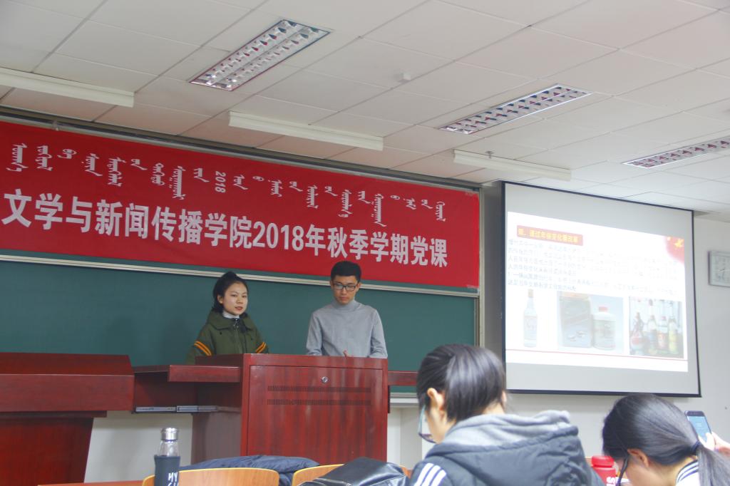 听了斯琴高娃老师的党课后,大家以班级为单位派代表进行了展示,总结了四天党课的心得体会。其中,2016级汉语言文学班以“从服饰看生活变化”为主题,生动展现出改革开放前后服饰的演变过程,2016级播音与主持艺术班则是别开生面地以“中国国防力量日益强大”为主题,深度剖析了军队的发展史和改革开放以来现代国防的升级换代。最后,2016级新闻班以最贴近大学生活的“教育事业发展变化”为题,结合自身实际,详细阐述了高考制度改革的影响和教育事业40年发展历程,使大家对改革开放四十年的成就有了更加深入的领悟。