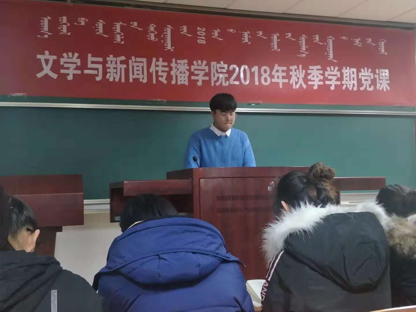 11月20日,赵晓茹老师以“发展党员的程序”为主题,对我国的党员变化趋势、发展党员的工作方针和流程进行了讲解,并结合自己的亲身体验,使大家充分认识到作为社会主义接班人和建设者的重要使命。党课结束后,大家共同观看了视频《庆祝改革开放致青春(下)》,其中所体现的内涵正如赵晓茹老师所言,“希望大家能够在有限的青春岁月中,最大化地实现自己的人生价值,努力去创造,为了伟大的祖国而努力,共同构建祖国的美好未来。”