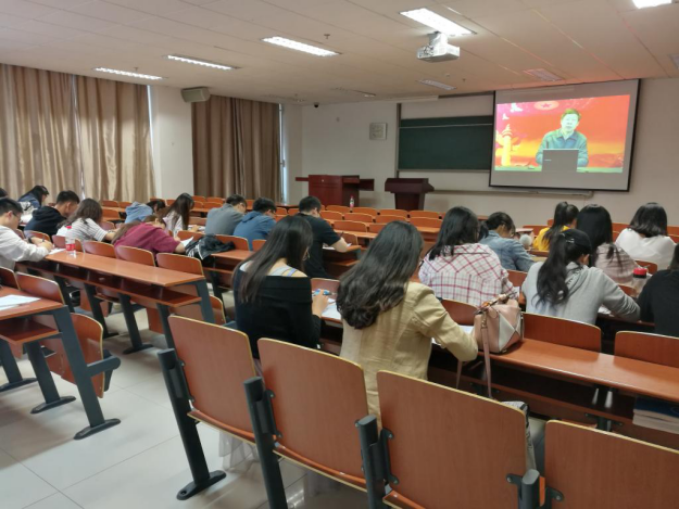 5月10日下午,我院党支部于主楼0603教室继续开展学习贯彻党的十九大精神专题培训。本次培训内容为观看“党课大讲堂 新时代 新思想 新目标 新征程”学习专题讲座第一部分“历史性成就和历史性变革”的影像资料,由中央党校研究生院原副院长刘春主讲。教工党支部部分党员、本科生党支部全体党员到场观看。