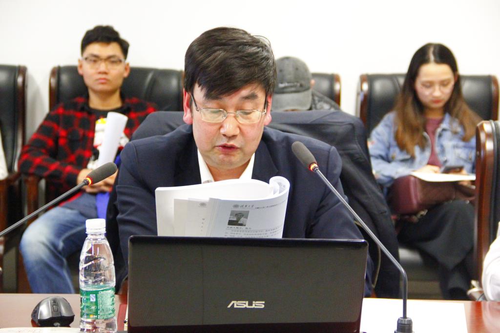 魏院长首先阐释了习近平新时代中国特色社会主义思想的主要内涵,结合专业从文学史、文学理论的角度重点讲了对十九大报告中“坚定文化自信,推动社会主义文化繁荣兴盛”这一部分的理解和认识。会上,魏院长还分享了他在清华大学“学习贯彻党的十九大精神,加快‘双一流’大学建设”专题研修班上的学习心得,结合学院实际强调了学校“双一流”建设的目标举措和我们努力的方向。魏院长强调,高校教师作为传道授业解惑者,应该是中华优秀传统文化最重要的传承者,弘扬核心价值观的重要践行者,应在教育教学中贯彻、传播这种优秀传统文化,坚定文化自信,教书育人相统一,在双一流大学建设中书写奋进之笔。