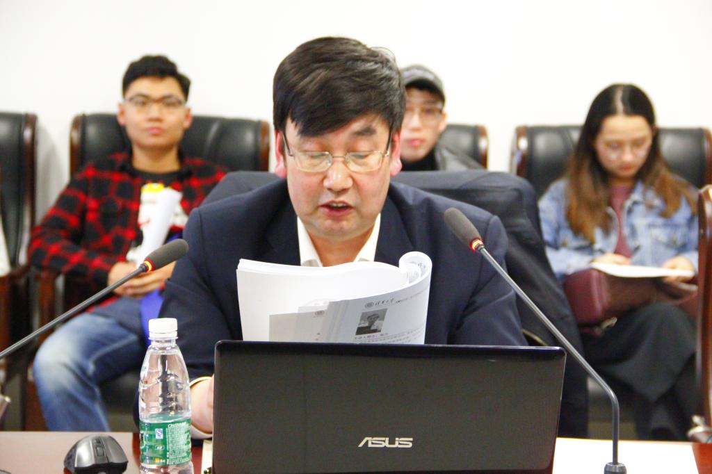 魏院长首先阐释了习近平新时代中国特色社会主义思想的主要内涵,结合专业从文学史、文学理论的角度重点讲了对十九大报告中“坚定文化自信,推动社会主义文化繁荣兴盛”这一部分的理解和认识。会上,魏院长还分享了他在清华大学“习贯彻党的十九大精神,加快‘双一流’大学建设”专题研修班上的学习心得,结合学院实际强调了学校“双一流”建设的目标举措和我们努力的方向。魏院长强调,高校教师作为传道授业解惑者,应该是中华优秀传统文化最重要的传承者,弘扬核心价值观的重要践行者,应在教育教学中贯彻、传播这种优秀传统文化,坚定文化自信,教书育人相统一,在双一流大学建设中书写奋进之笔。