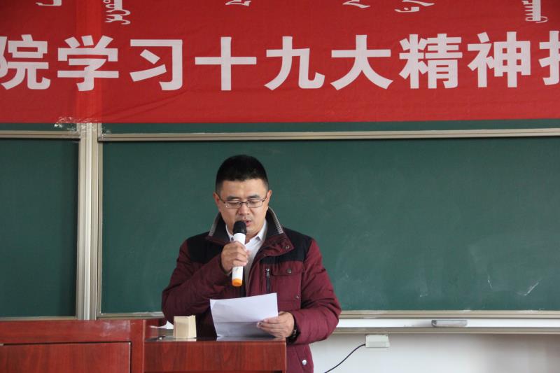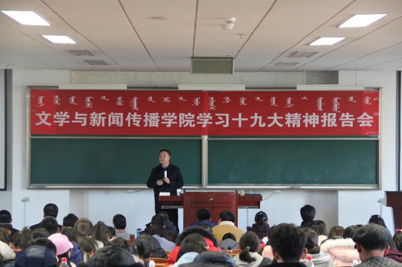 按照学校党委学习宣传贯彻党的十九大精神的部署和安排,为了帮助我院师生进一步深入学习、深刻领会和全面把握党的十九大精神实质和丰富内涵,11月23日下午3:00,我院在南区主楼阶二B教室召开学习宣传贯彻党的十九大精神专题报告会。会议邀请内蒙古自治区社科联副主席胡益华作了专题学习辅导。参加学习会的有学院院长魏永贵教授、副院长张丽萍教授和全体没课的教师、部分研究生、本科生、文研班学员共计300余人。此次活动也是我院形势政策系列报告会之一。