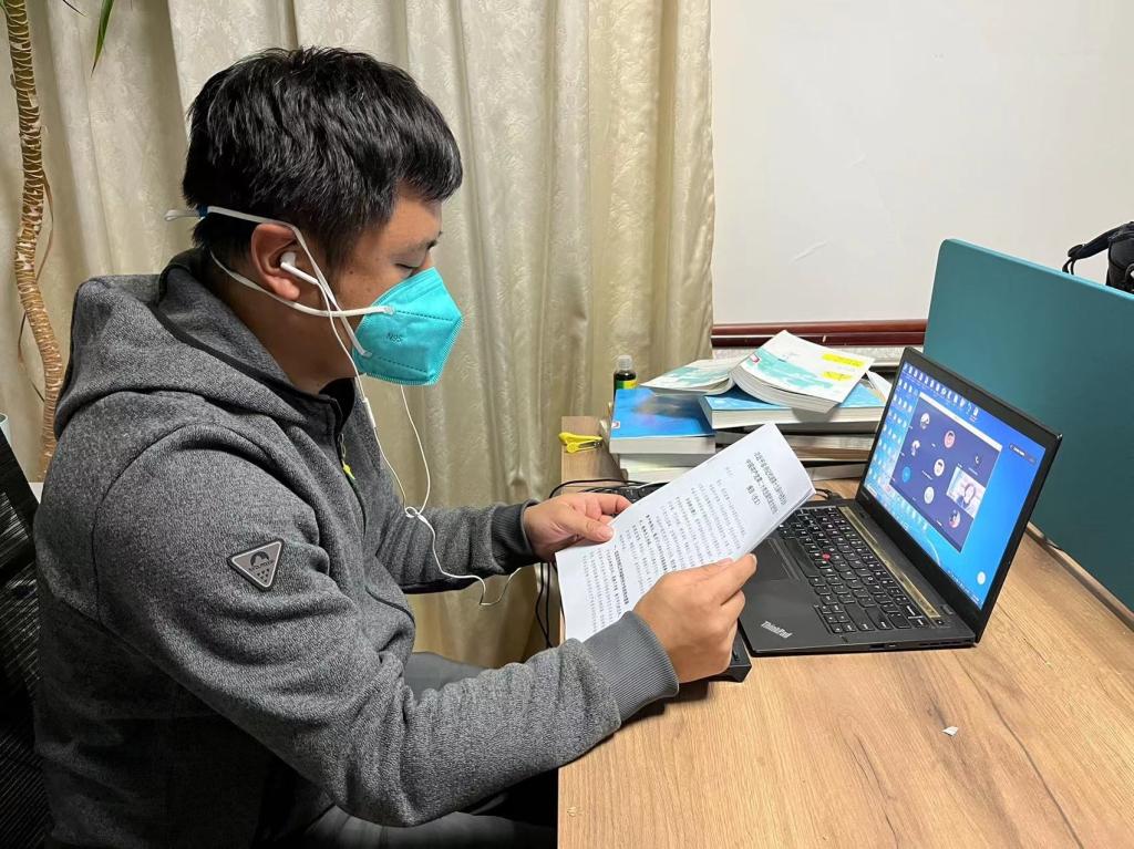 会议还通报了学院抗疫工作进展,任文秀老师、冯坤老师和博德玛老师发言。任文秀老师认为抗疫工作的细致程度,没有最细,只有更细,要在无微不至中让所有同学都感到温暖。冯坤老师提到学院抗疫临时党支部所发挥的先锋模范作用和所彰显的不惧考验的昂扬斗志。博德玛老师为能够跟这些最可爱的同事和同学一起并肩作战而感到无比自豪。