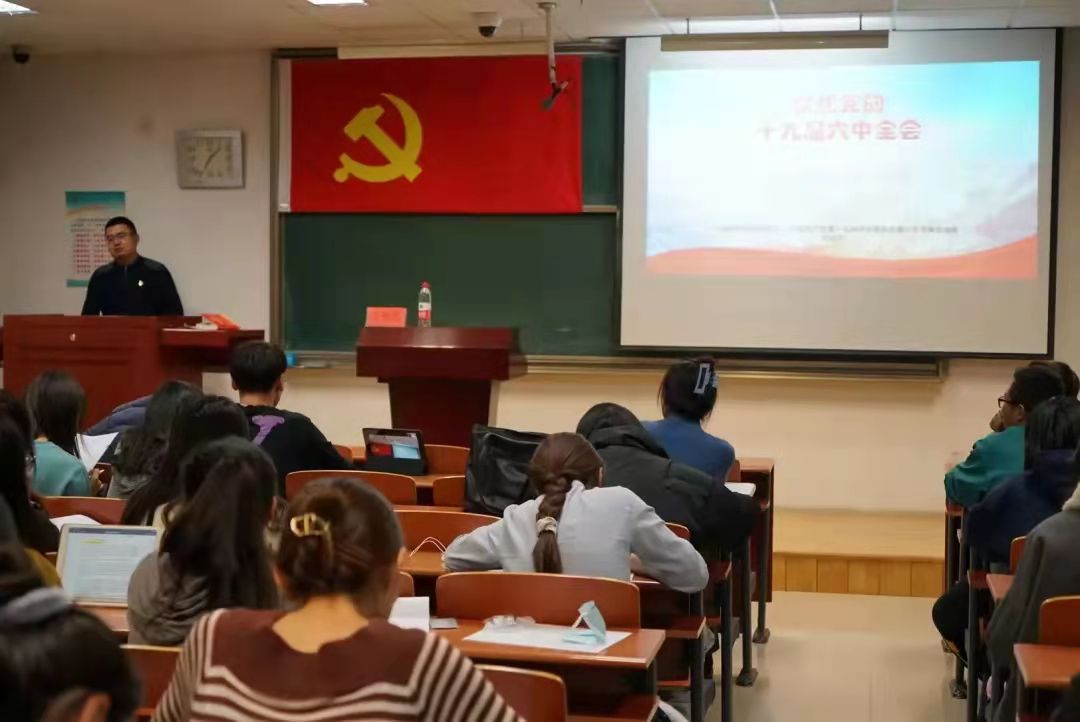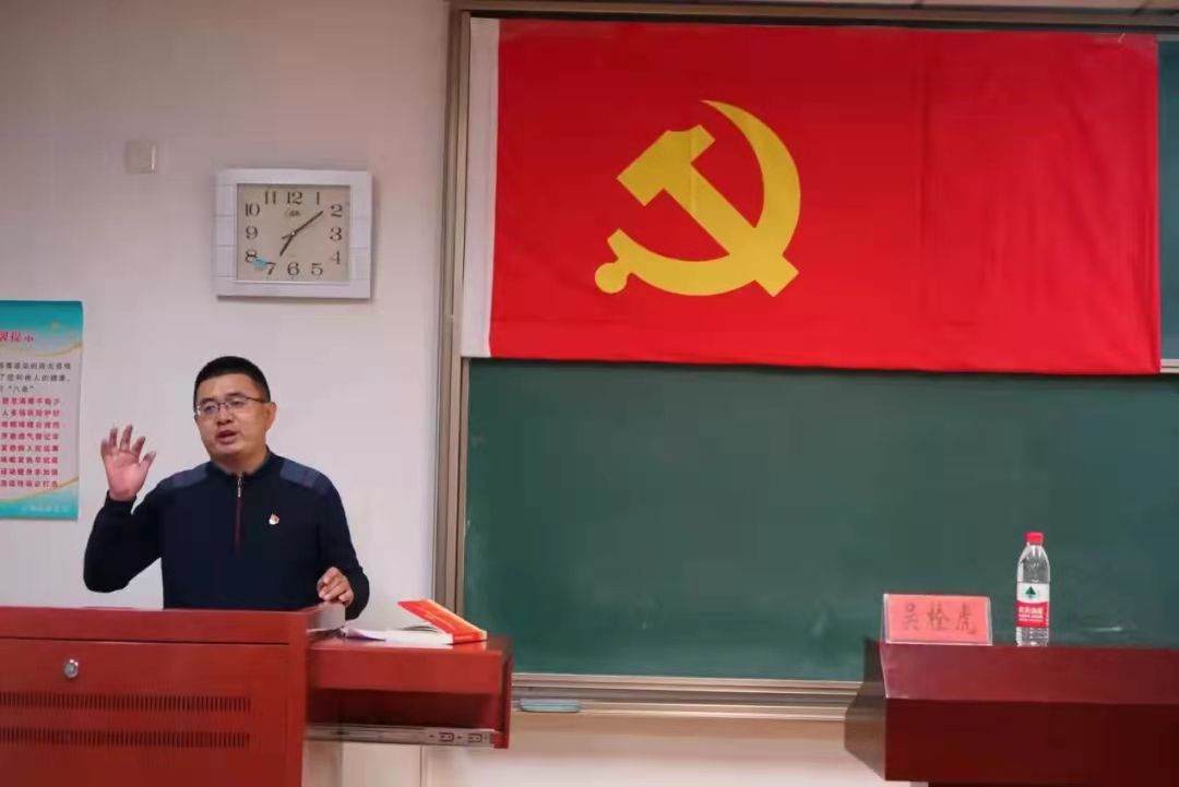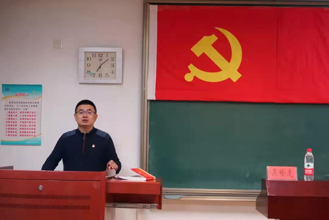 为持续推进党史学习教育走深走实,深入学习中国共产党十九届六中全会精神和《中共中央关于党的百年奋斗重大成就和历史经验的决议》,2021年12月10日下午7:00,我院于卓越楼0506教室面向发展对象开展“请党放心,强国有我”2021年秋季学期第二次主题党课,本次党课由我院党委副书记吴栓虎老师主讲。
