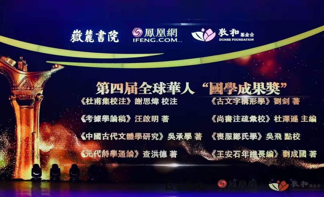 11月28日,第四届全球华人国学大典颁奖典礼在北京举行,我院特聘教授查洪德先生的著作《元代诗学通论》荣获国学成果奖。