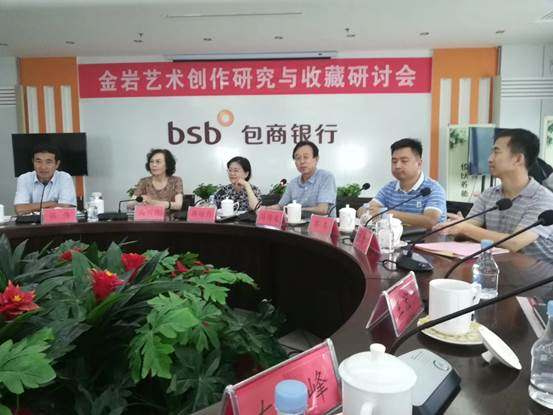 15日上午9点至12点,召开了金岩艺术创作研究与收藏研讨会,会议由《包商时报》主编,全国十大读书人物冯传友先生主持。张伟教授代金岩先生宣读《创作体会谈》金岩先生以绘画为例,谈及自己从事艺术创作的三件法宝:“成功在于选择,成败在于方法,成就在于特色”。国家一级编剧、剧作家郭长岐先生认为,金岩无论是在事业还是在艺术创作领域,都有他自己的心得,他可以在书法、摄影、绘画、写作等领域都取得了一定的成果,也不是偶然,他可以称之为实在的“杂家”。张伟教授认为,金岩给文艺创作的启示在于他的非理性、偶然性和无意识,这是可贵的创造精神。随后,张继炼、张树天、王宏伟、高兰英、越慧贞、鄢冬等专家学者,从散文、书法、绘画、摄影、剪纸等方面对金岩的文艺创作给予充分的肯定,也都提出了真诚的建议。