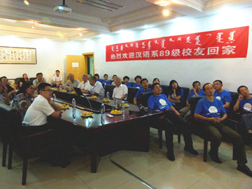 座谈会上气氛活跃,师生之间交流频繁,曾任汉语系系主任的张先生在会上感叹二十年时光如水,众多学子与汉语系一同成长,他希望众多校友踏实工作,为内大增光,在未来的事业中争取更好的发展。