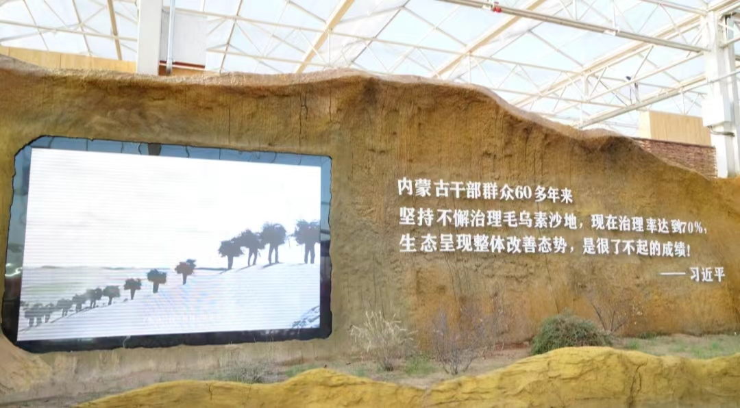 “内蒙古干部群众60多年来坚持不懈治理毛乌素沙地,现在治理率达70%,生态呈现整体改善态势,是很了不起的成绩!”牧区大寨博物馆里,习近平总书记对毛乌素沙地治理成就的肯定跃入眼帘。