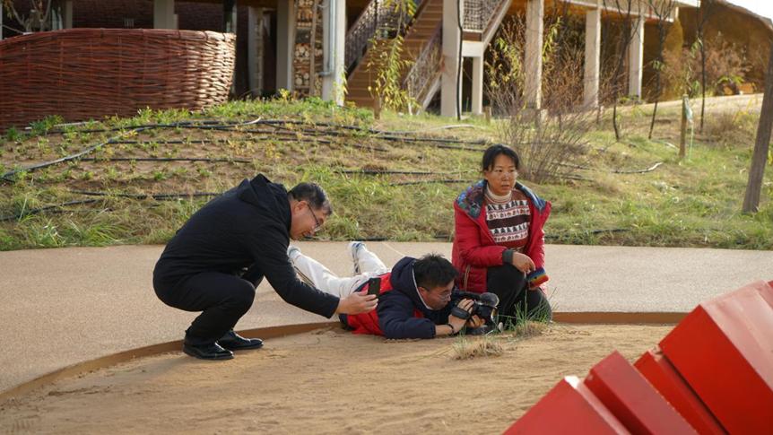 团队成员拍摄沙地植被