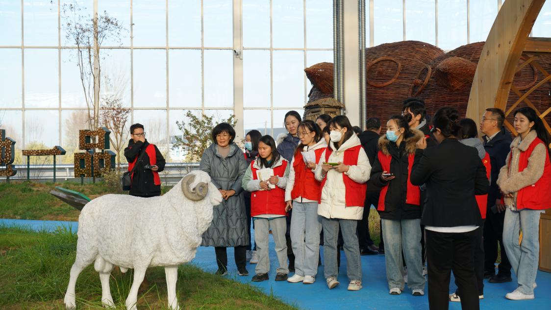 三天行走,风尘仆仆,时间虽短,收获颇丰。师生一行实地调研、走访了萨拉乌苏遗址博物馆、巴图湾红色小镇、宝丰煤基新材料有限公司、牧区大寨、毛乌素沙地歼灭战绿化示范项目基地。穿行在毛乌素沙地腹部,师生们深刻感受到乌审人民直面风险与挑战,坚定不移打好“红”“绿”两张牌的鲜活实践。