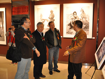 揭牌仪式上,我院各位领导、老师参观了本次大画幅作品展览,并与主办方进行了深入探讨与交流。而后,呼和浩特市绿篱影廊文化传播有限公司总经理