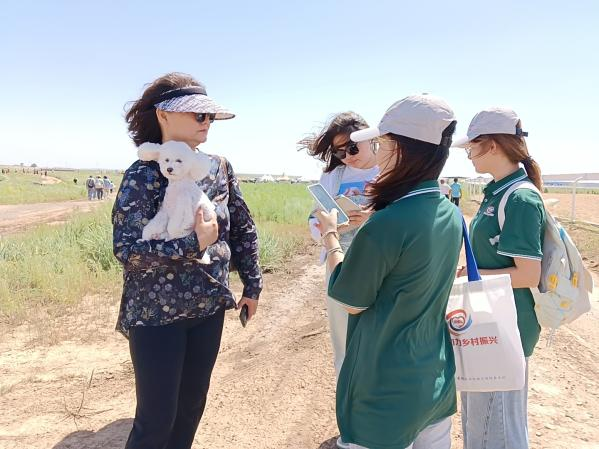 借此盛会契机,服务队在当地深入开展调研,精心组织了一场以“学说普通话+那达慕语言文化推广+聚焦农牧民”为主题的推普宣传活动。活动中,服务队发放300余份问卷调查,与当地农牧民、商户、各地游客及工作人员等17人进行现场访谈。同时服务队还向过往群众发放推普宣传手册,面对面向农牧民讲解国家通用语言文字推广相关政策。通过这些方式,团队全面掌握当地群众普通话使用现状与学习需求,悉心聆听他们对普通话使用的真切感受,深切体会到语言互通为生活、交流带来的温暖助力。