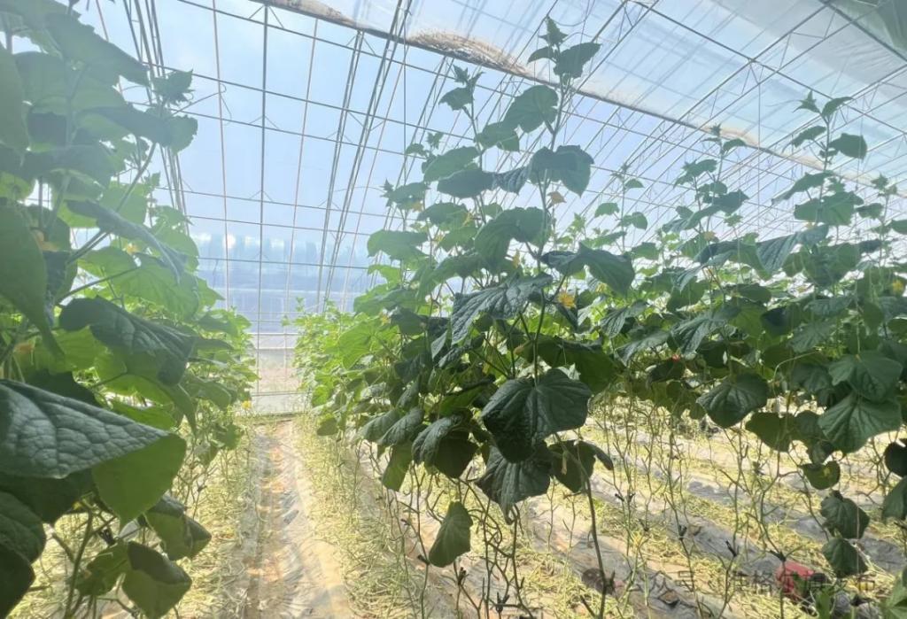 走进十二连城乡五家尧村准格尔旗现代智慧设施产业园内(以下简称示范园),新型水蓄热内保温装配式日光温室里,工作人员正在给黄瓜“落秧”。有意思的是,大棚外面烈日炎炎,大棚里面温度适宜。“这里的黄瓜、西红柿可以无限生长,长成一批,把叶子掐掉,藤蔓降下来,它会继续结果,这个棚的优势在冬季,它不需要任何加温措施就可以实现果蔬类正常生产。温室大棚内安装多个水箱,组成水墙,外界温度高时可蓄热,温度低时可放热,大棚还是双膜双被,在冬季更好地保证了大棚内的温度。”准格尔旗现代智慧设施农业产业园总经理曹彪说。