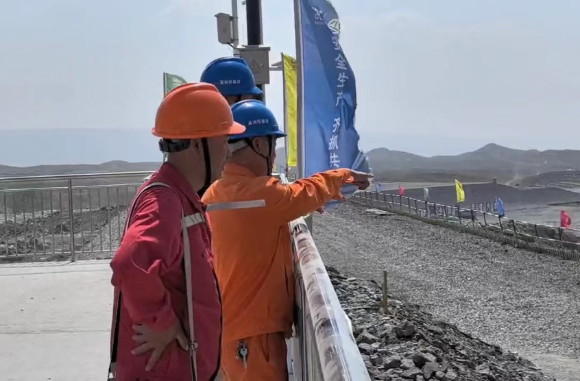 记者一行人驱车从山麓数百米行至平台处,到达乌海市抽水蓄能水电站施工现场,内蒙古电力集团乌海抽水蓄能有限责任公司地下厂房工程项目部项目经理谢时振陪同参观并进行讲解,还就总项目施工进度进行了详细地分享。他指出:“上水库工程已完成库盆土方明挖、引水系统上平段及中支洞开挖支护施工,目前正在进行库盆和进出水口开挖、大坝填筑、引水事故闸门井开挖、引水上斜井等施工。”