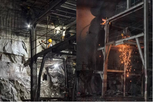 从洞外望,狭长的隧洞延伸至黑色尽头。乘车驶入通风洞兼安全洞到尽头便可直抵地下厂房。在主变洞二层,施工人员持续开挖,安装固定顶拱的钢筋网片。不远处,主厂房的卡车正在边墙出渣作业,工人在下面进行方向指挥。掉头向前走,是正在高架上进行焊接作业的工作人员,上面不时有火星掉落。“根据进度安排,预计2025年10月,地下厂房向机电安装移交工作面;预计2027年年底,首台机组投产发电。”地下厂房工程项目部项目经理谢时振同记者说道。